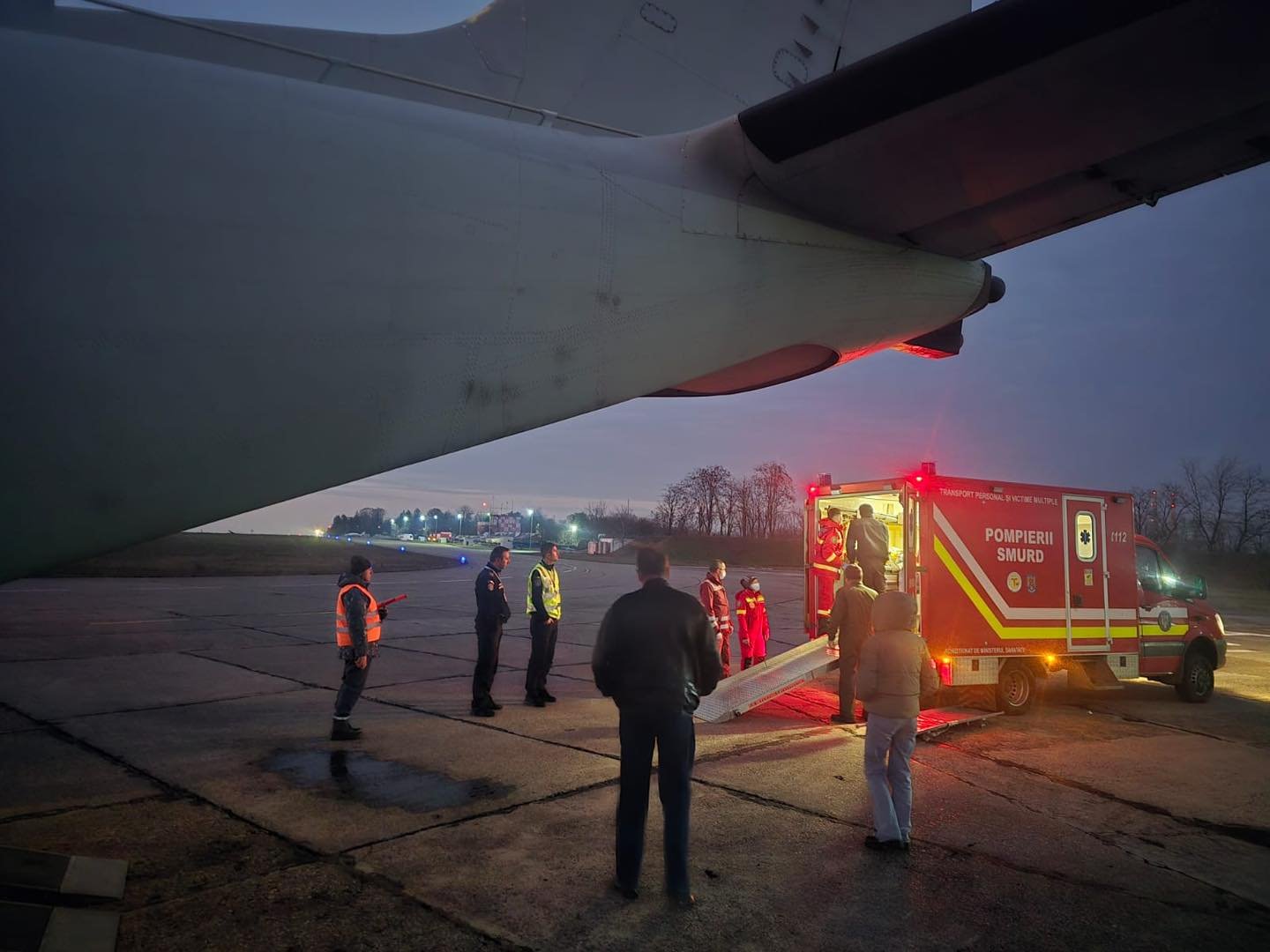 Doi pacienți cu arsuri au fost transportați de la Bacău la un spital din Bruxelles, cu o aeronavă Spartan a Forțelor Aeriene Române