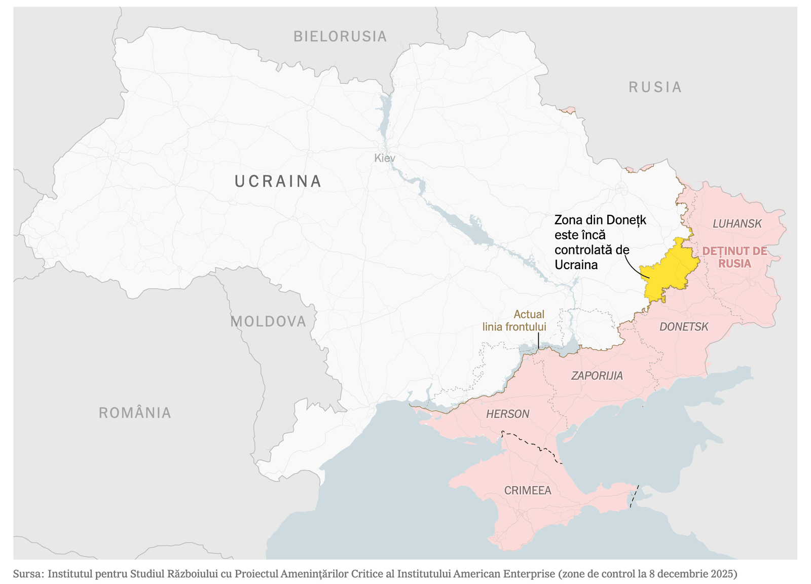 „Mărul discordiei” dintre Ucraina și Rusia stă într-un teritoriu de doar 4000 km². NYT arată unde este bucata de pământ care blochează pacea lui Trump